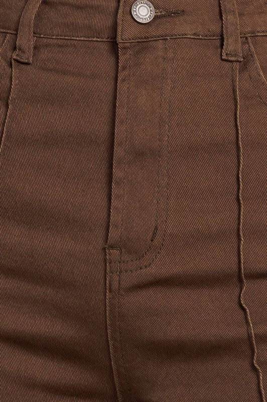 The Cacao Edge Jeans are crafted from a rich, solid twill fabric that offers structure with a hint of stretch. Featuring a front closure and functional pockets, this versatile style blends classic tailoring with a modern edge.