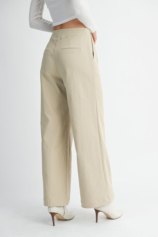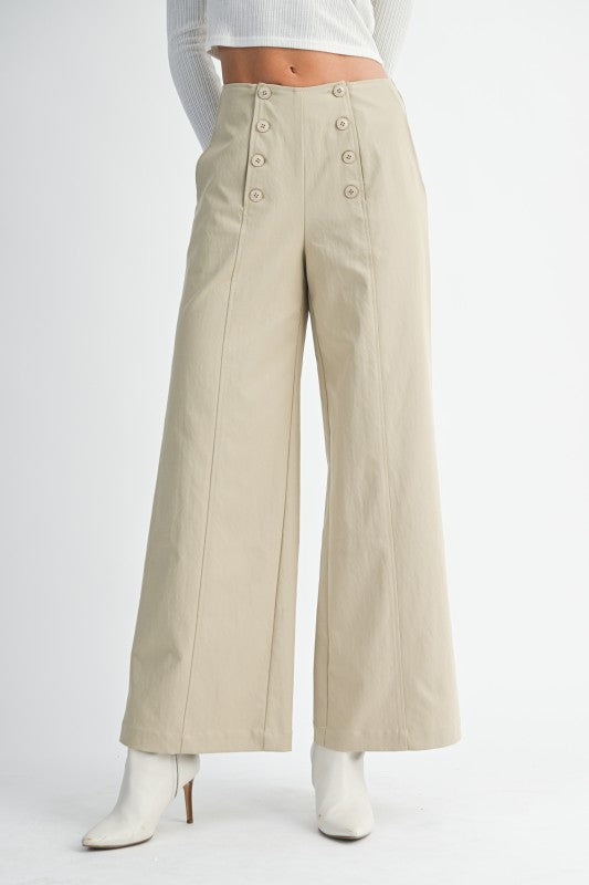 The Shoreline Front Pants deliver a refined nautical aesthetic with their signature front button detailing. Designed with a wide-leg silhouette for effortless movement, these pants feature a chic capri length that transitions seamlessly from day to night. Functional side pockets provide practicality without compromising style. Fabric content: Self 100% polyester. Lining 96% polyester, 4% spandex (light stretch for comfort).