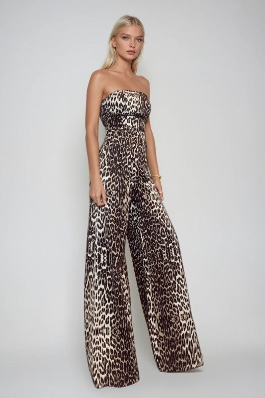 Step into bold confidence with the Untame Icon Jumpsuit, a wide-leg tube denim silhouette crafted in ultra-stretchy leopard-print denim. Designed for effortless movement, it features a flattering smocked back for a secure, comfortable fit, while the wide-leg pants bring dramatic flow with every step. Side pockets add that perfect touch of practicality.