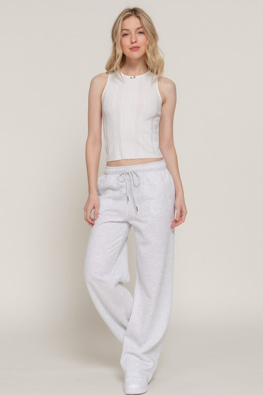 Foamline Knit is a sleeveless crew-neck sweater top finished with a tiny rose bow trim at the neckline for a subtle feminine pop. Knit in a vertical pointelle (open-stitch) pattern that flatters and adds airy texture, it layers easily or stands alone on warmer days.