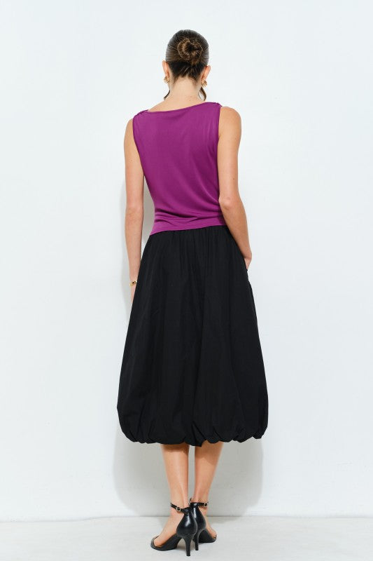 Gilded Draped Top is a gold-accented, draped cowl neck sleeveless top that blends elegance with a modern edge. The soft draped neckline creates a graceful silhouette, while a gold-tone accent on one shoulder adds a striking touch of sophistication. Subtle side ruching enhances the fit, making it flattering and comfortable. Designed with a sleek sleeveless cut and clean back, this top is perfect for pairing with both day and evening looks. Crafted from soft, high-quality fabrics for effortless style. Fabric content: 100% polyester.
