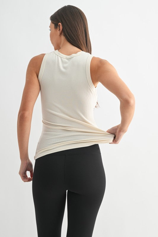 The Sand Current Tank is your go-to essential for effortless layering or stand-alone style. Crafted from a soft rayon-spandex blend with micro-ribbing, it offers just the right amount of stretch for a flattering, fitted silhouette. Designed with a rounded neckline and a full-coverage raised back, this versatile tank pairs comfort with a sleek finish. Fabric content: 91% rayon, 9% spandex.