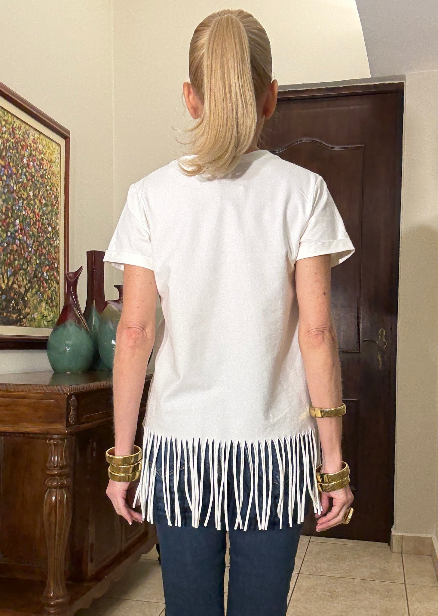 Add a touch of western flair with the Wild West Fringe Tee. Featuring bold RODEO graphics across the front and a playful fringe hem, this top is designed to move with you while making a statement. Crafted from 95% polyester and 5% spandex, it offers a soft stretch for all-day comfort—perfect for pairing with denim and boots for that effortless rodeo-ready look.