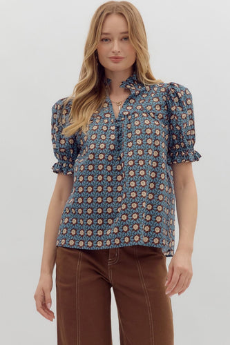 Blue Carved Top