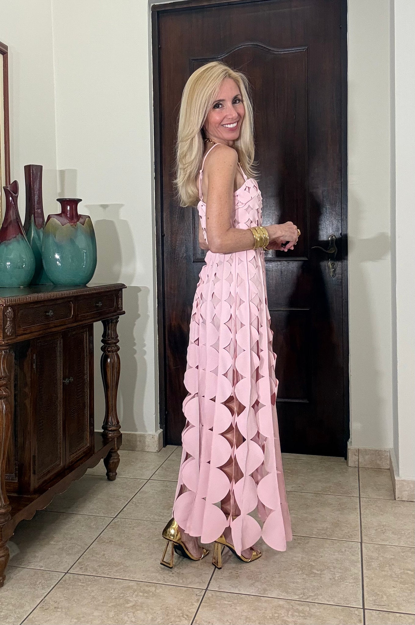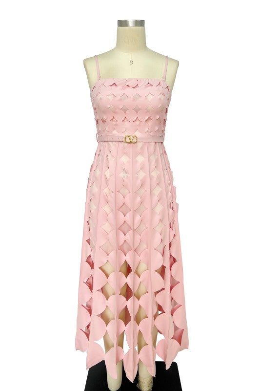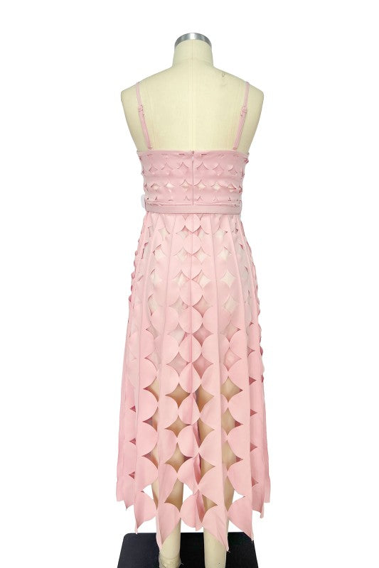 Blush Orbit Midi is a statement midi dress featuring a unique circle fringe hem that moves beautifully with every step. Designed with removable adjustable spaghetti straps, it can be worn strapless or with straps for versatile styling. The waist belt defines the silhouette while keeping the look polished and modern. Crafted in a lightweight woven fabric, this dress is perfect for brunch dates, celebrations, vacations, or any activity on your calendar where you want to feel confident and effortlessly chic.