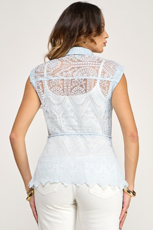 Lace Society Top is a sleeveless lace statement piece designed to elevate any look with effortless attitude. Featuring an adjustable tie waist belt that defines your silhouette, this top blends feminine lace with a modern, confident vibe. It’s the kind of classic-cool piece that works with denim, trousers, skirts, or layered under a jacket. Perfect in every color, impossible to choose just one. Trust us… you’ll want it in all of them.