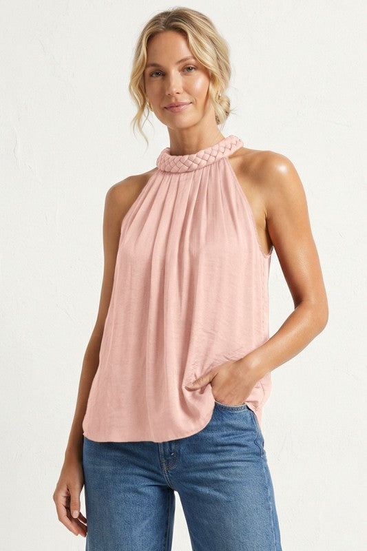 Soft, refined, and effortlessly striking, the Rose Braidline Top features a beautifully braided neckline that adds a sculptural, elevated touch while the fluid silhouette drapes with ease. Its sleeveless design keeps the look modern and versatile, perfect for pairing with denim, tailored pants, or a statement skirt. Polished yet relaxed, this is the kind of top that instantly elevates your everyday style.