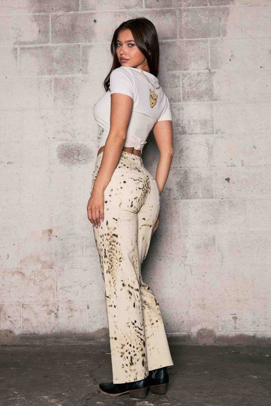 Unleash your bold side with the Wildcat Jeans, the statement denim your closet has been waiting for. Designed in a fierce wildcat pattern print, these wide-leg jeans bring attitude, confidence, and effortless cool to every step. The flattering silhouette elongates the legs while the structured yet flexible fabric moves with you, making them as comfortable as they are unforgettable.